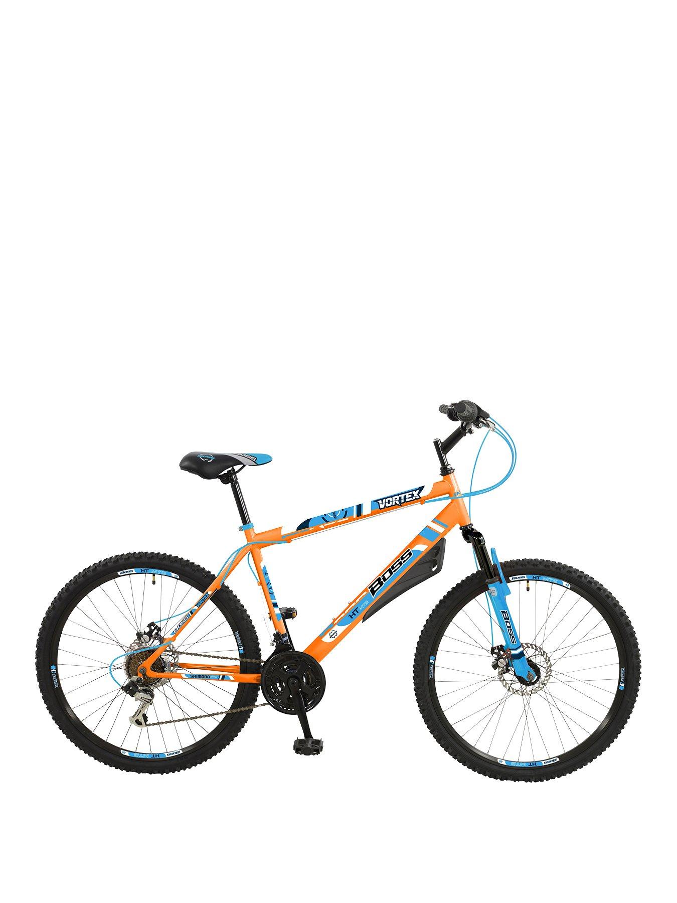 Off roading is no problem on the stealth thanks to its full suspension 21 speed shimano gearing and powerful mechanical disc brakes which can be relied upon in any and all conditions. The boss vortex 26 inch mountain bike is set to tackle the elements and stand out from the crowd. Boss vortex 18 mens front suspension mountain bike 2019 orange blue. 4 0 out of 5 stars 4 ratings.