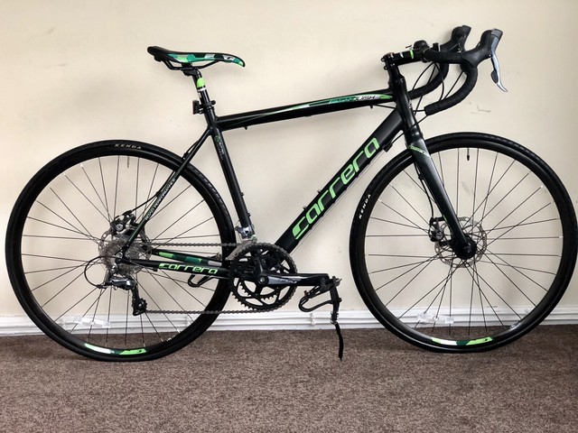 Spread the cost from 11 64 per month. The carrera vanquish disc mens road bike black is a fast yet comfortable bike designed with the sportive rider in mind. On the road the short reach of the carrera makes it feel less like a wannabe race bike and more like a sportive bike. Its triple butted aluminium frame combines the best in strength and durability while its 16 speed shimano gearing and narrow 700c double wall aluminium wheels will help you drive speed along straights and comfortably climb any hills you may come across.
